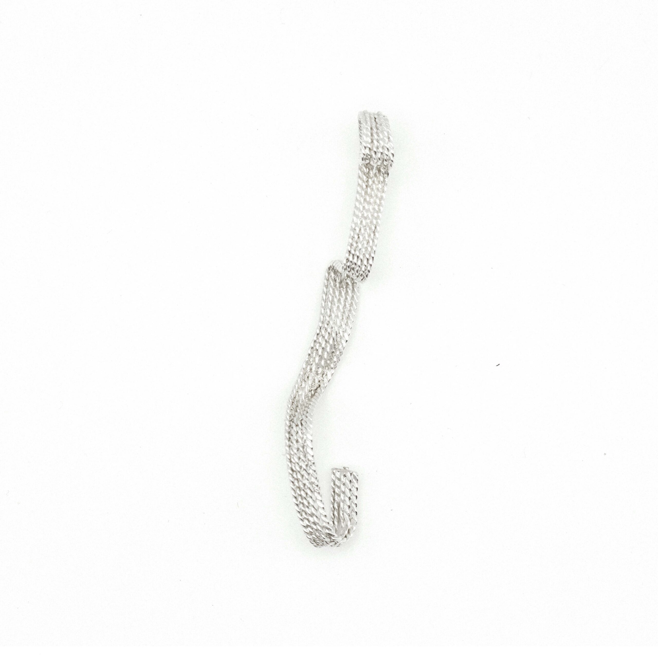 The piece is sculpted on a plaster mould of the wearer’s ear, allowing the jewellery to follow the unique anatomy of the ear, resulting in a one of a kind piece.